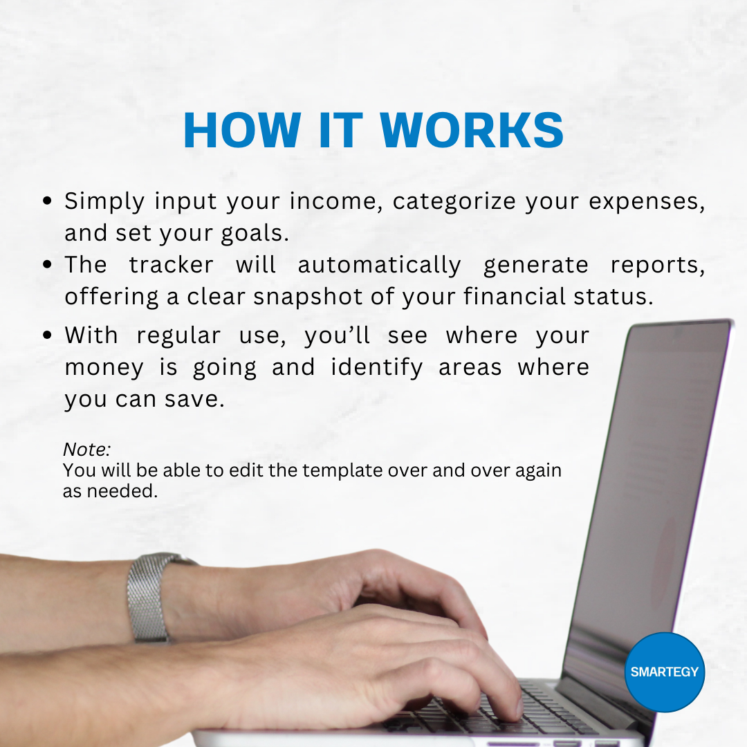 How It Works: Simply input your income, categorize your expenses, and set your goals. The tracker will automatically generate reports, offering a clear snapshot of your financial status. With regular use, you’ll see where your money is going and identify areas where you can save.