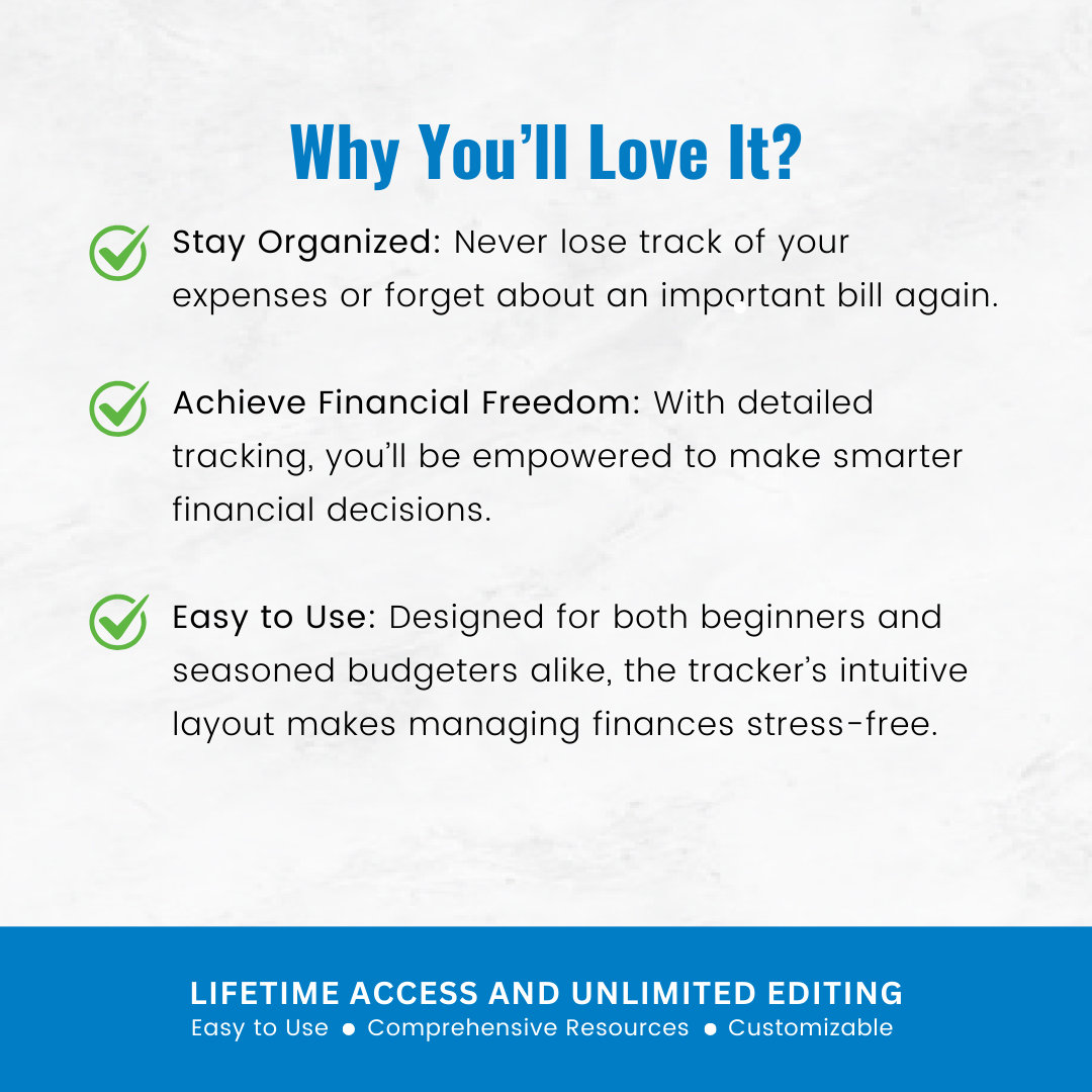 - Easy to Use: Designed for both beginners and seasoned budgeters alike, the tracker’s intuitive layout makes managing finances stress-free.