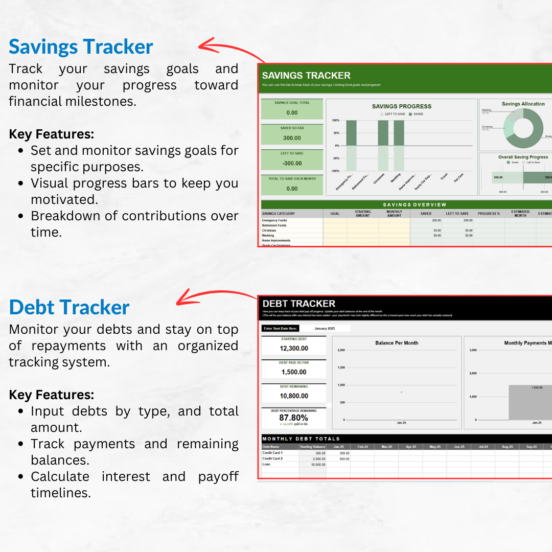 - Debt Management: Stay on top of your debts and monitor your progress with the debt tracker.
